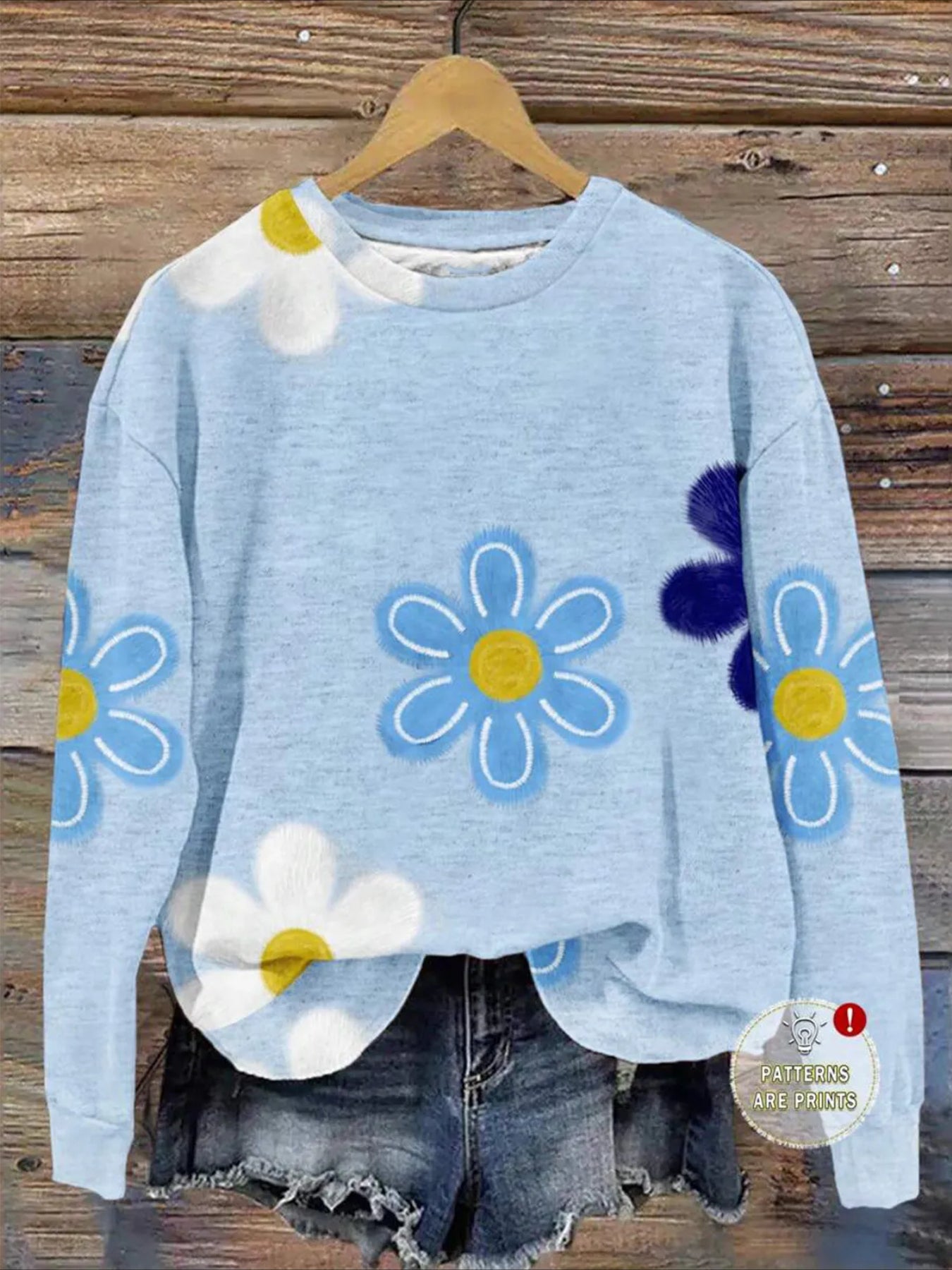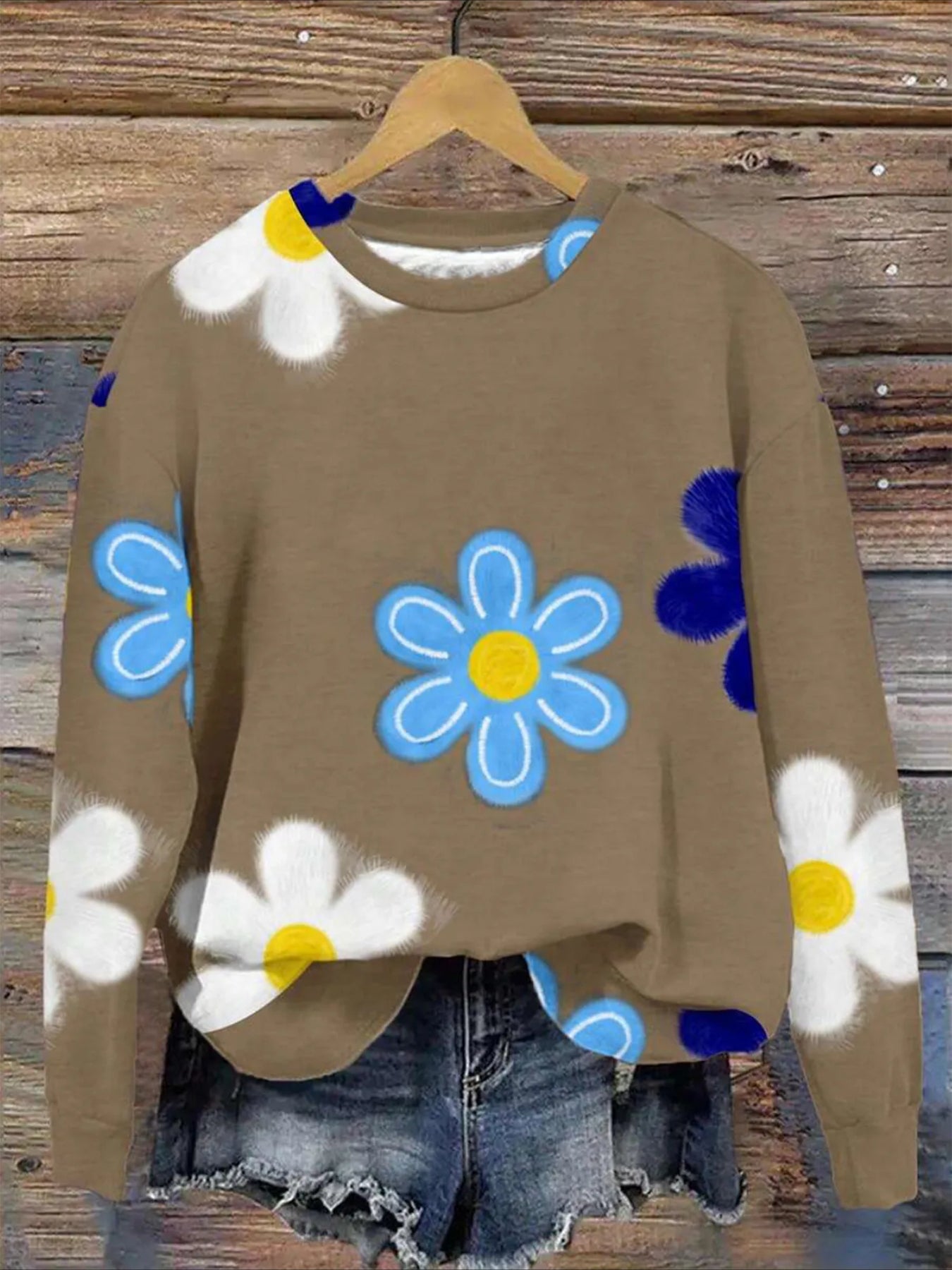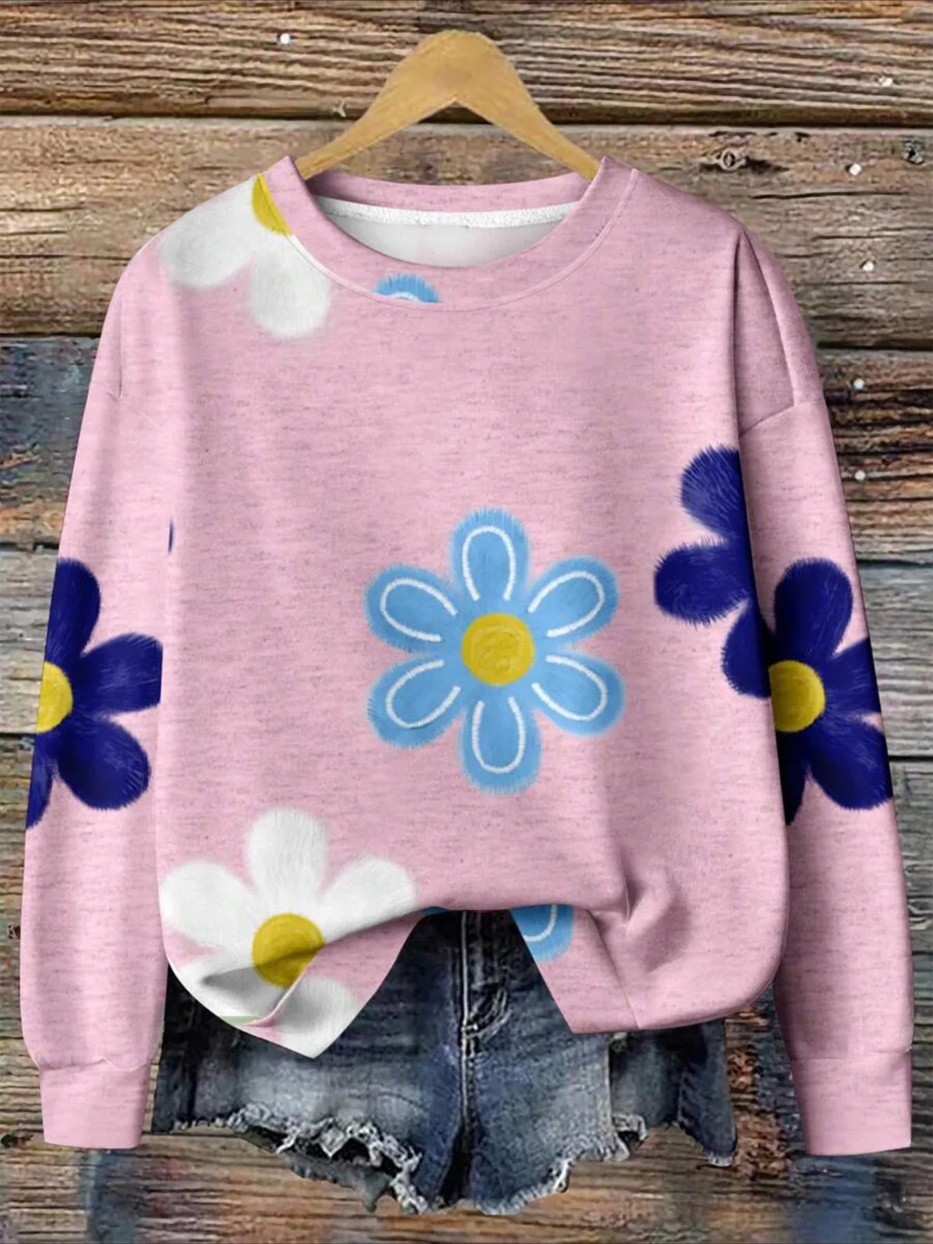 Text Printing Crew Neck Floral Long Sleeve Sweater Hoodie