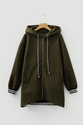 - Zip-up hoodie offers adjustable styling and easy layering.Tunic length provides extended coverage for versatile outfits.Drop shoulder design ensures relaxed comfortable fit.Contrast cuffed sleeves create a chic vigor detail.