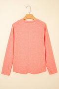 Sale Striped Botton Crew Neck T-Shirt, Elegant Long Sleeve T-Shirt