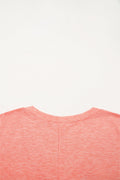 Sale Fresh Salmon Floral Patchwork V Neck Long Sleeve T Shirt