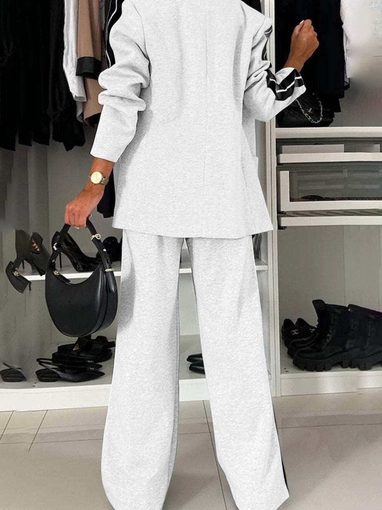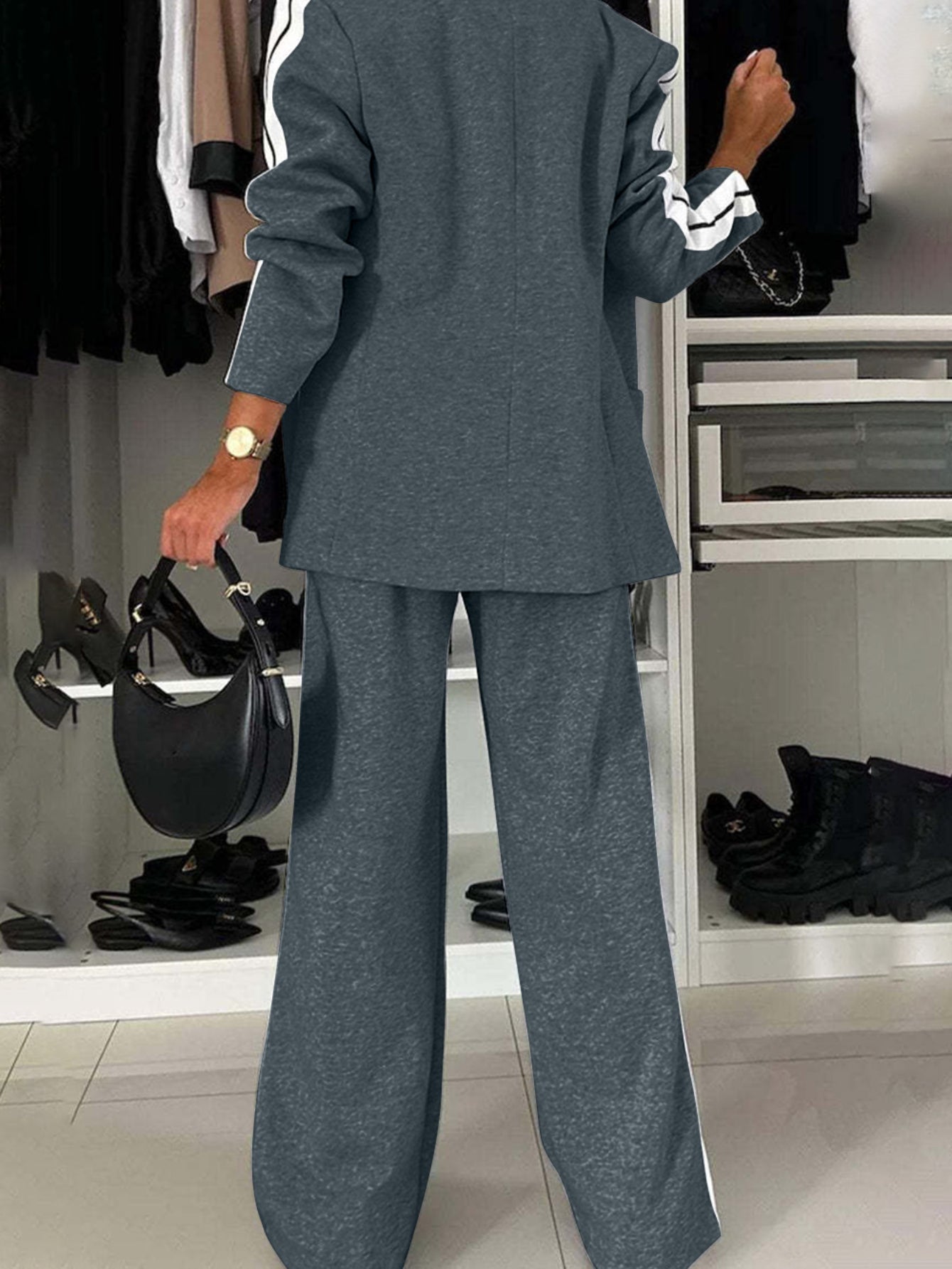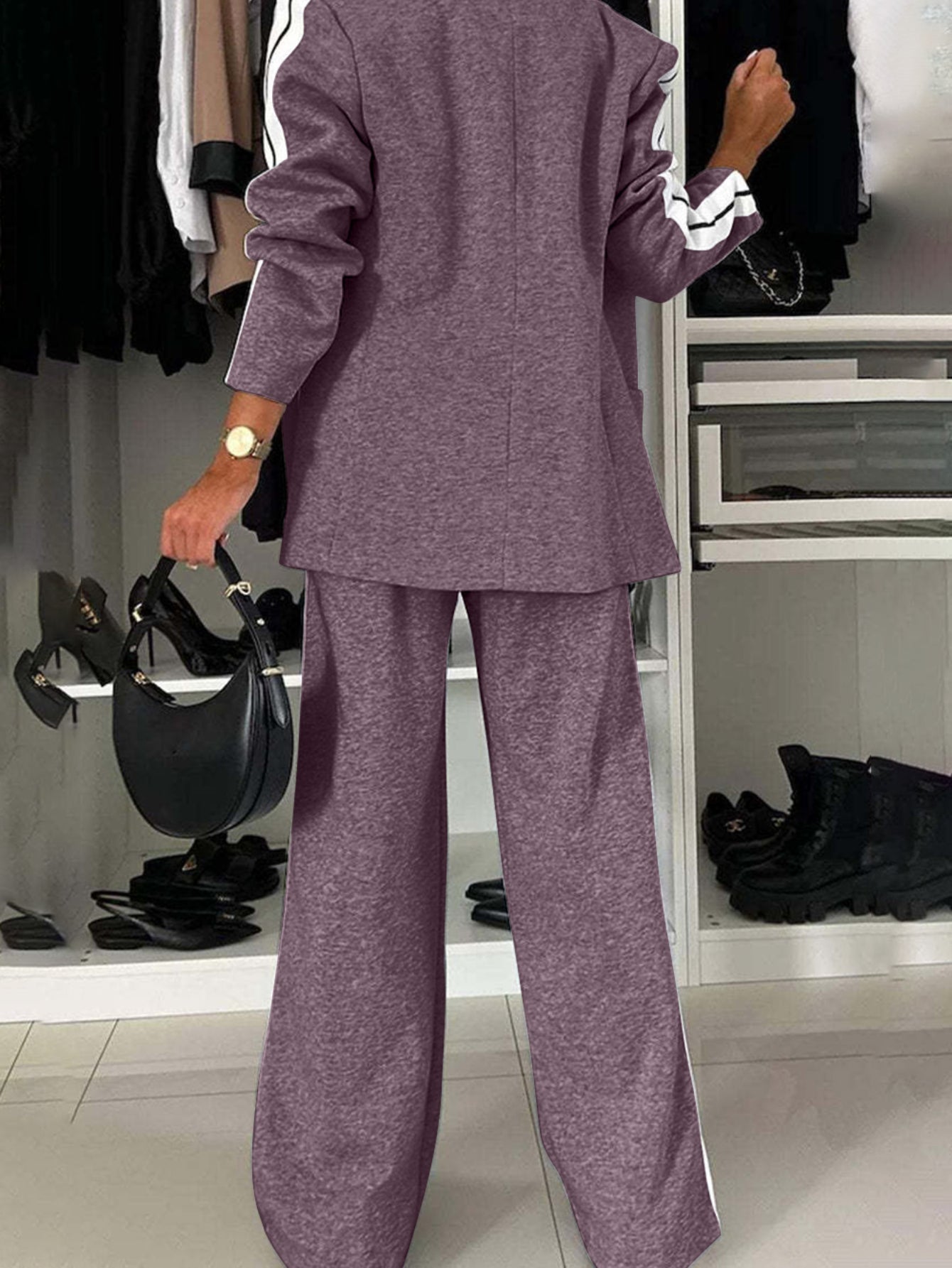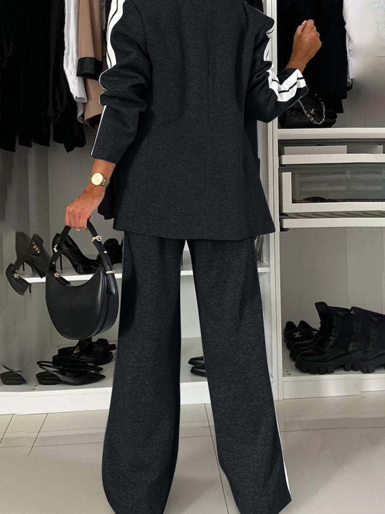 Sale Full Size Contrast Lapel Collar Top and Pants Set
