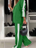 Khaki Stripe Collared Pullover Top and Drawstring Pant Set