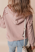 Sale Fushia Solid Color Rivet Stud Raglan Sleeve Hoodie with Pocket