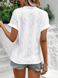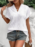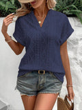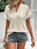 Sale Geo Pattern Notched Neck T-Shirt, Elegant Short Sleeve Textured T-Shirt