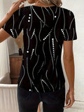 Sale Graphic Geometric Striped Elegant Vintage Fashion Long Sleeve Crew Neck Regular Tops