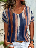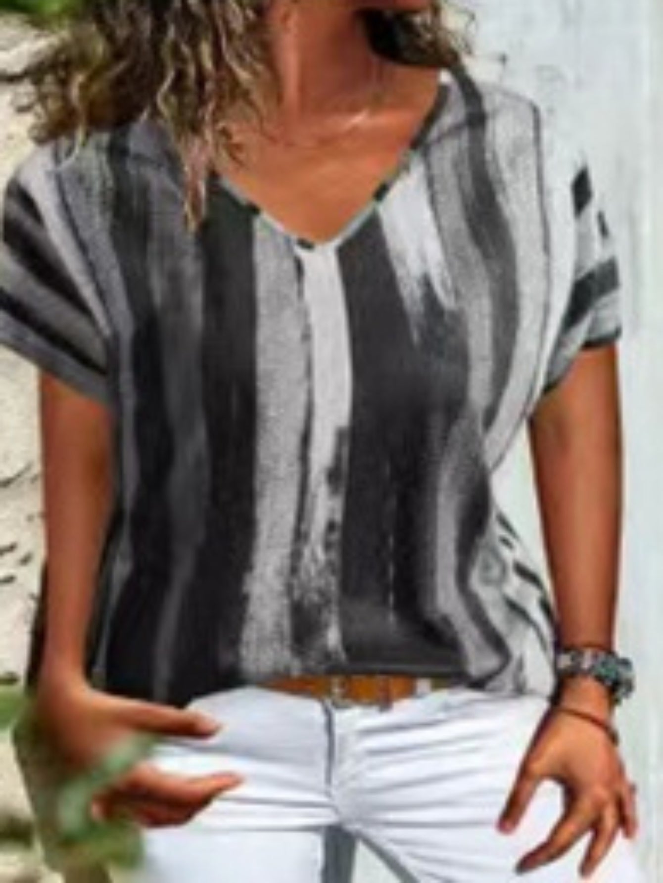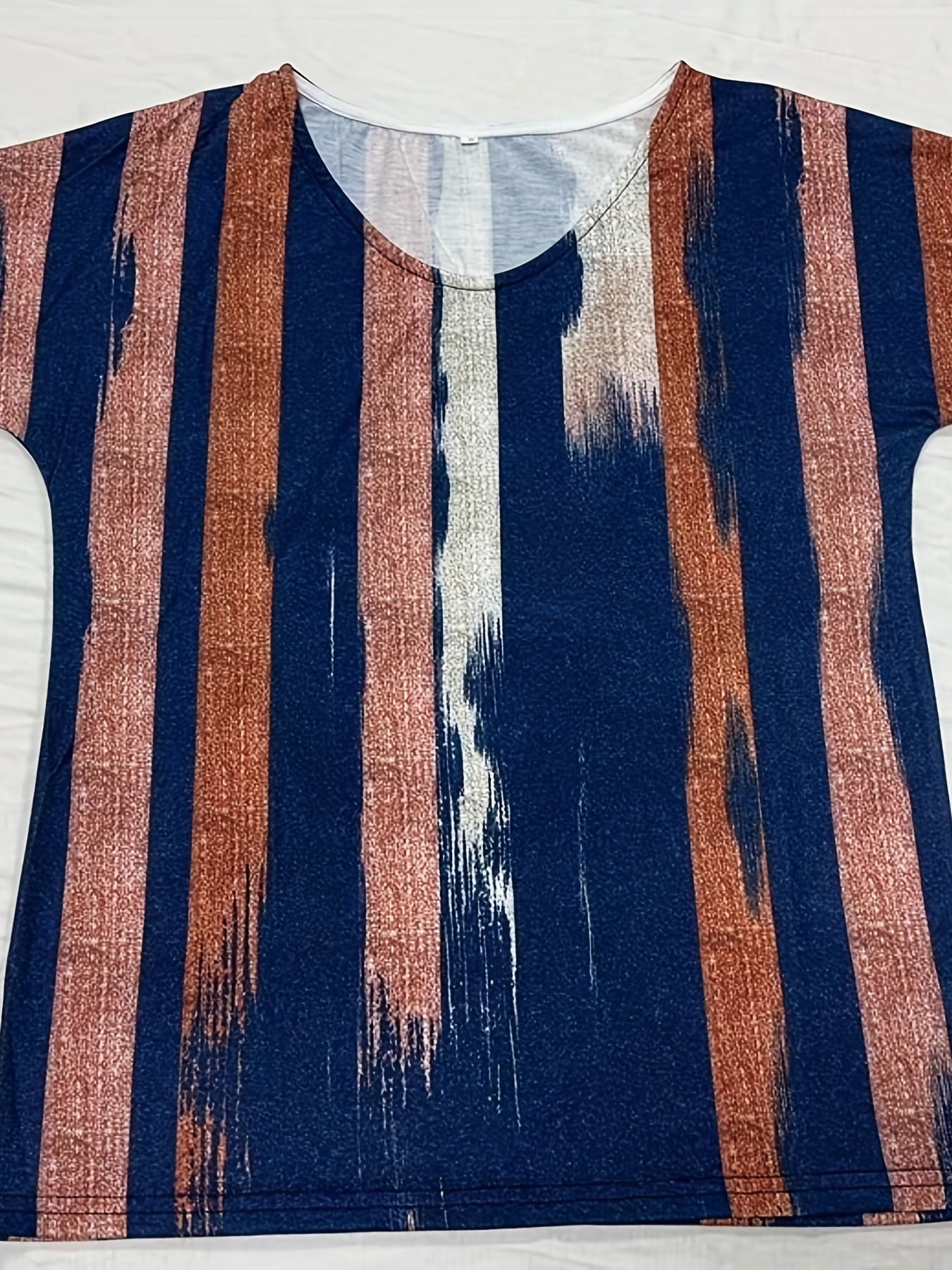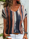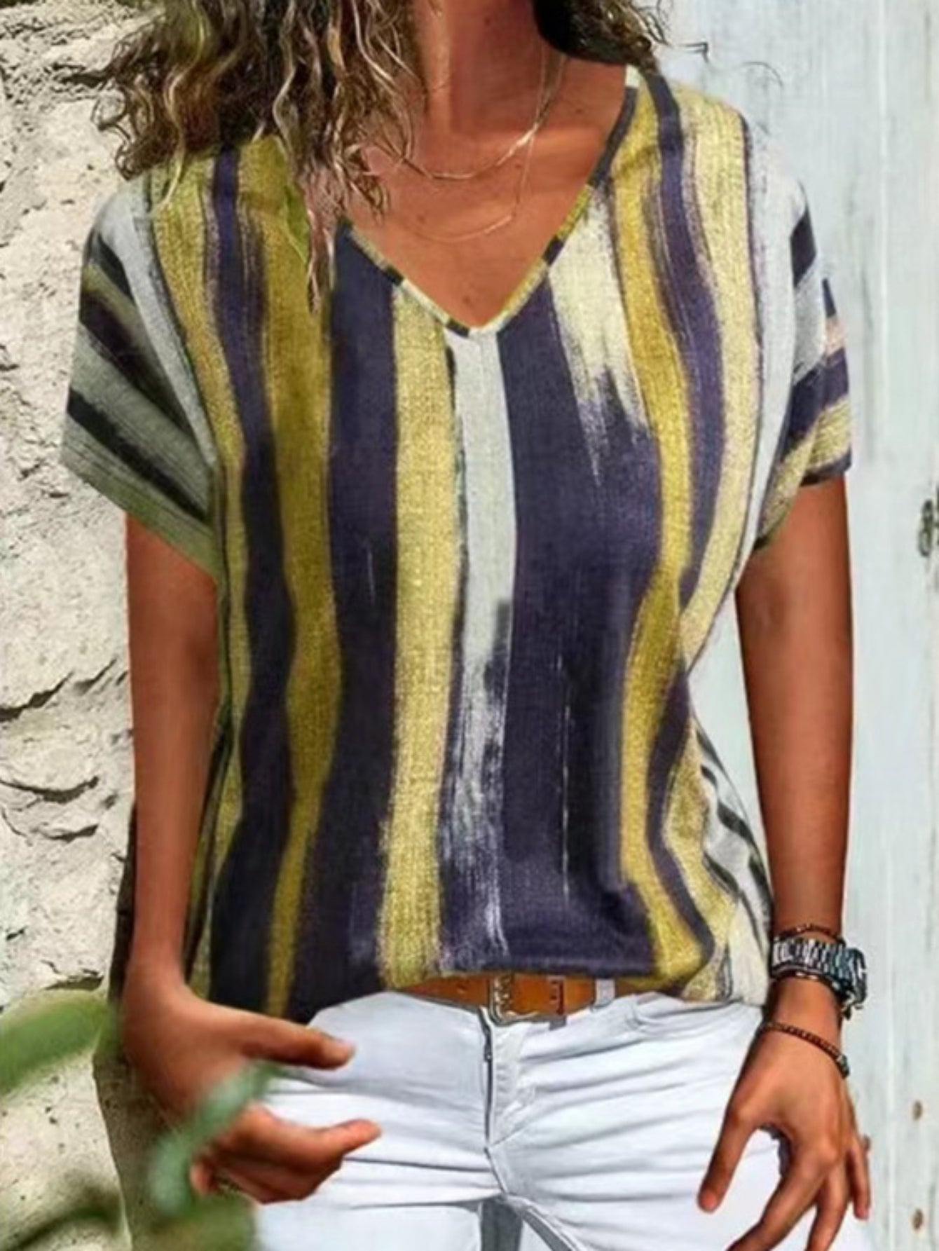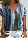 Geometric Graphic Print V Neck T-shirt, Casual Loose Short Sleeve Summer T-Shirts Tops
