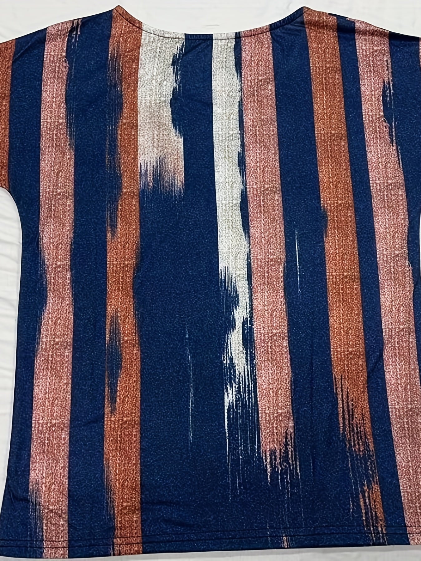 Sale Graphic Geometric Striped Elegant Vintage Fashion Long Sleeve Crew Neck Regular Tops