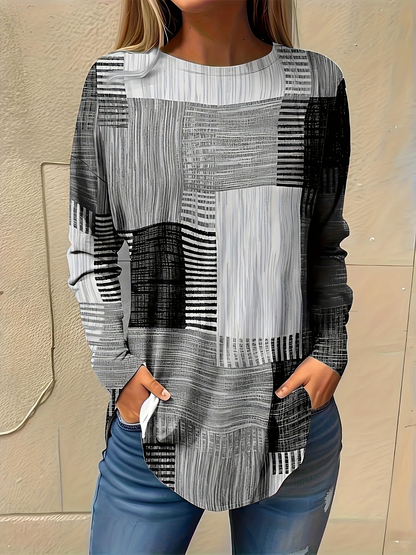 Sale Graphic Geometric Striped Elegant Vintage Fashion Long Sleeve Crew Neck Regular Tops