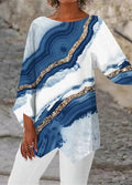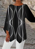 Sale Graphic Geometric Striped Elegant Vintage Fashion Long Sleeve Crew Neck Regular Tops