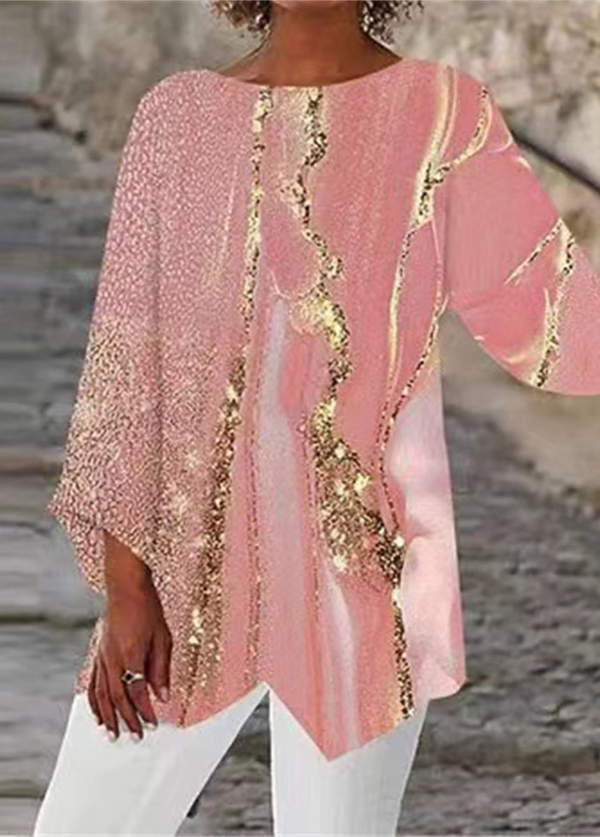 Sale V Neck Long Sleeve Geometric Regular Micro-Elasticity Regular Fit Blouse
