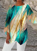 Geometric Printed Long-sleeved Round Collar Shirt Splicing