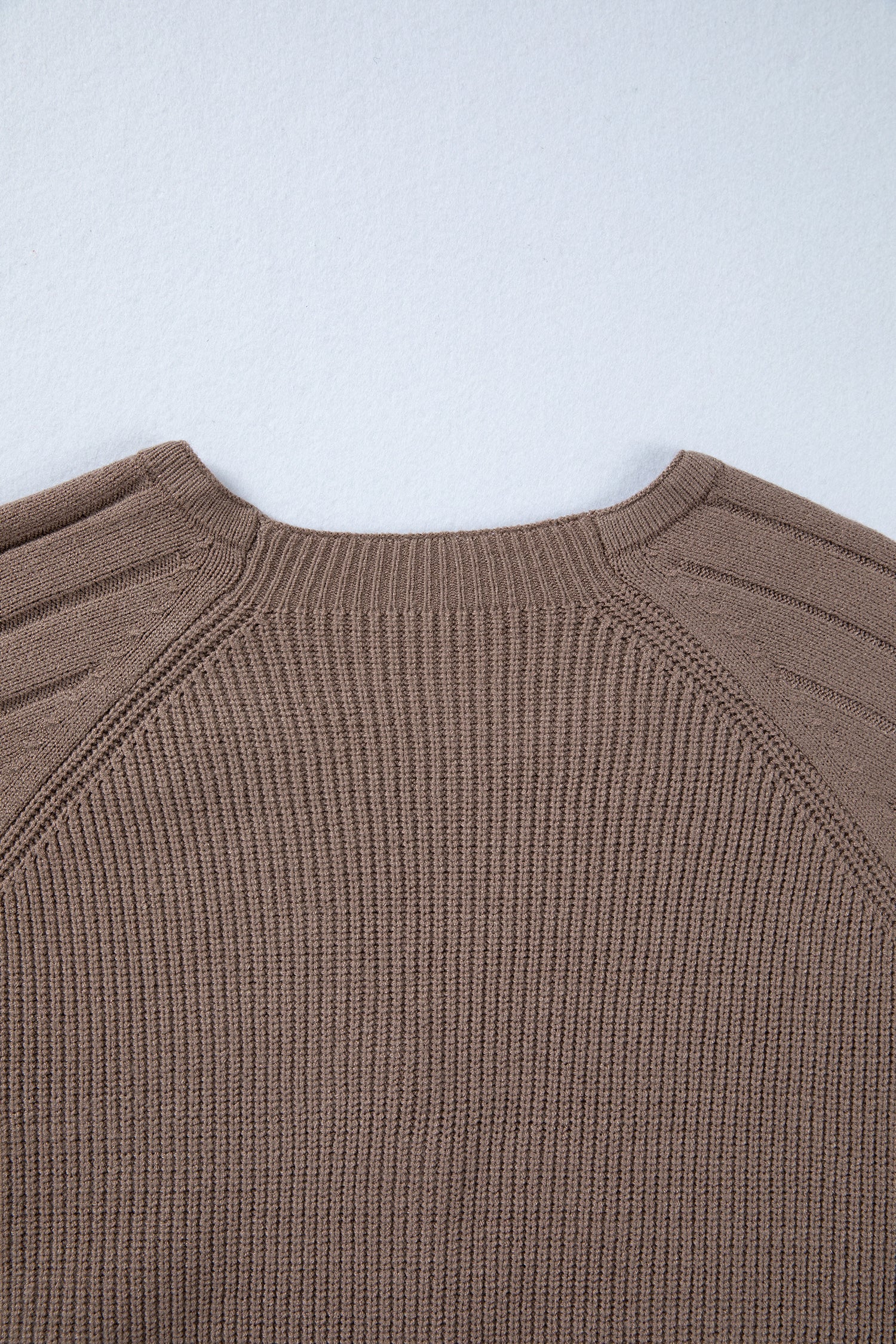 Goat Mixed Texture Knit Button V Neck Sweater Cardigan