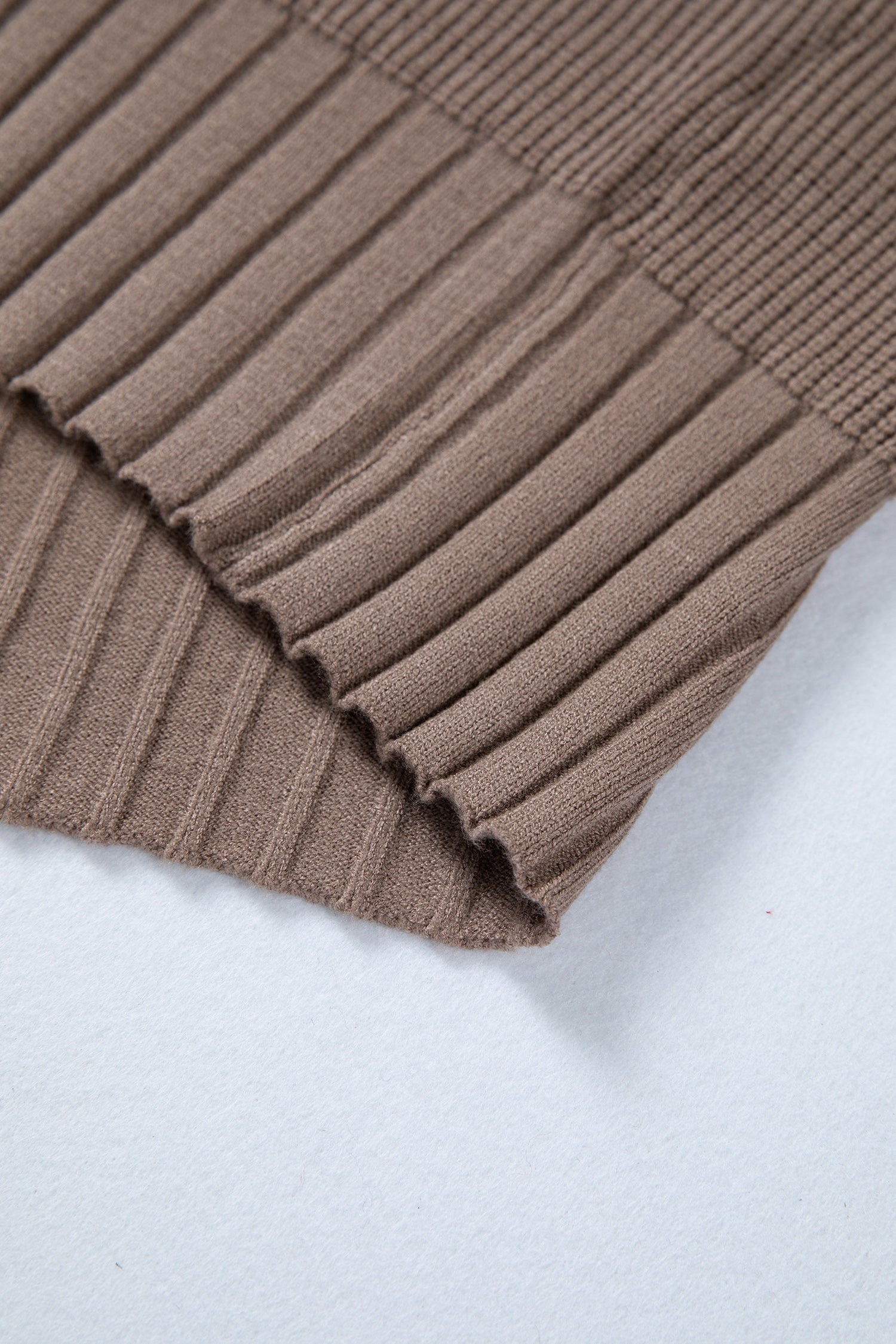 - This is a cozy sweater cardigan for women.Solid color knit with mixed textures patchwork.The relaxed cardigan has a v neck and button closures.You’ll look so cute by layering it over a tank and jeans.