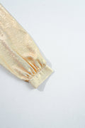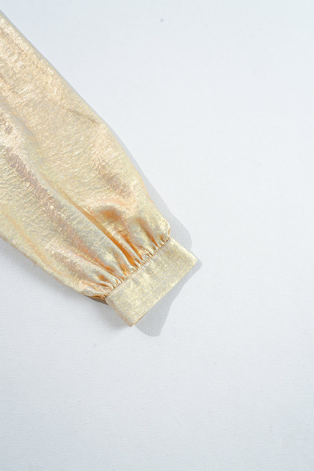 Sale Gold Metallic Frilled V Neck Puff Sleeve Babydoll Blouse