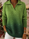 Gradient Color Party Polo Collar Shiny Loose Sweater Top