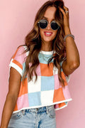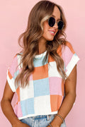 - This lightweight knit top features a boxy fit, fashionable and relaxedThe checkered print is perfect for going from edgy to dressyThe cap sleeve style adds a romantic touchStyle it up by pairing with jeans and be the talk of the town