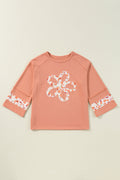 Sale Grapefruit Orange Flower Patch Graphic Exposed Seam Wide Sleeve Top