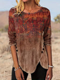 Sale Button Geometric Print Long Sleeve T Shirt