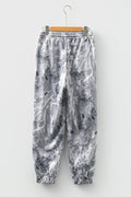 Dark Grey Mineral Wash Leopard Patchwork Loose Pants