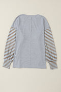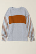 Sale Gray Colorblock Striped Bishop Sleeve Top