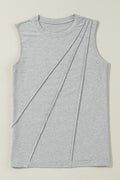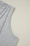 Gray Crew Neck Pleated Tank Top