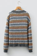 Gray Dotty Pattern Knit Button Front V Neck Sweater Cardigan