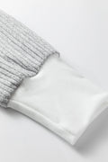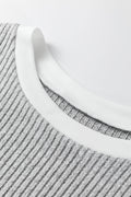 Gray Leopard Print Colorblock Patchwork Ribbed Knit Top