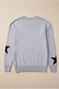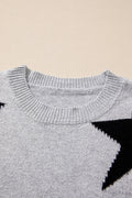 Gray Star Pattern Drop Shoulder Sweater