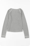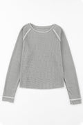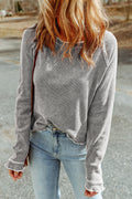 Gray Textured Round Neck Long Sleeve Top