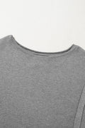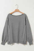 Sale Gray Waffle knit Bishop Sleeve Split Oversized Top