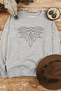 Gray Western Pattern Embroidered Drop Shoulder Pullover Top
