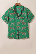 Green Cheetah Print Short Sleeve Shirt and Pants Pajama Set
