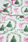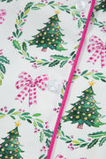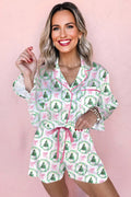Green Christmas Fashion Print Velvet Trim Bow Knot Pajama 2pcs Short Set