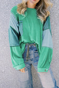Green Colorblock Stitching Patchwork Buttoned Long Sleeve Top