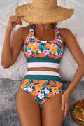 Sale Green Floral Print Racerback Cutout High Waist 2pcs Bikini