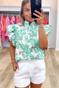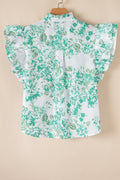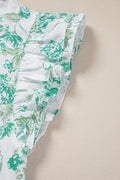 Green Floral Print Ruffle Sleeve Frilly Button Up Shirt