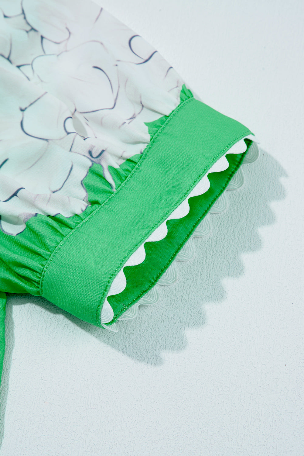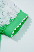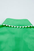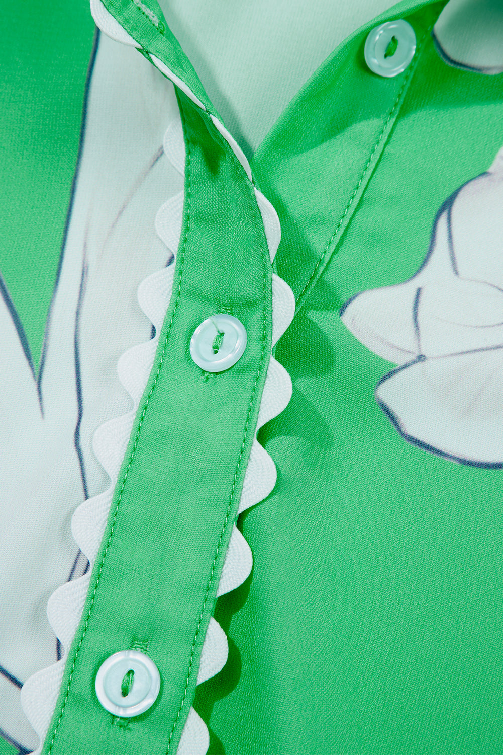 Sale Green Floral Ric Rac Edge Puff Sleeve Button Up Summer Shirt