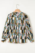 Sale Green Geometric Print Buttoned Balloon Sleeve Loose Fit Shirt