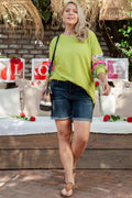 Green Plus Size Printed Patchwork Sleeve Split Sweatshirt