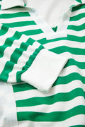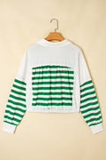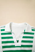 Sale Green Stripe Colorblock Collared V Neck Cropped Knit Pullover