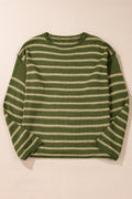 Sale Green Stripe Drop Shoulder Casual Sweater