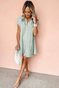 Green Stripe Frilled Sleeveless Collar Front Pocket Button Up Mini Dress