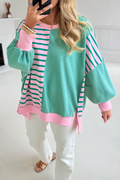 Sale Green Stripe Mix Pattern Color Block Patchwork Side Slit Baggy Sweatshirt