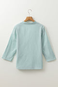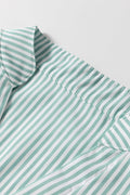 Sale Green Stripe V Neck Roll Up Sleeve Pocket Patched Classic Shirt
