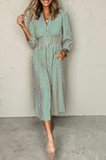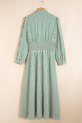Green Stripe V Neck Zip Front Cinched High Waist Midi Dress