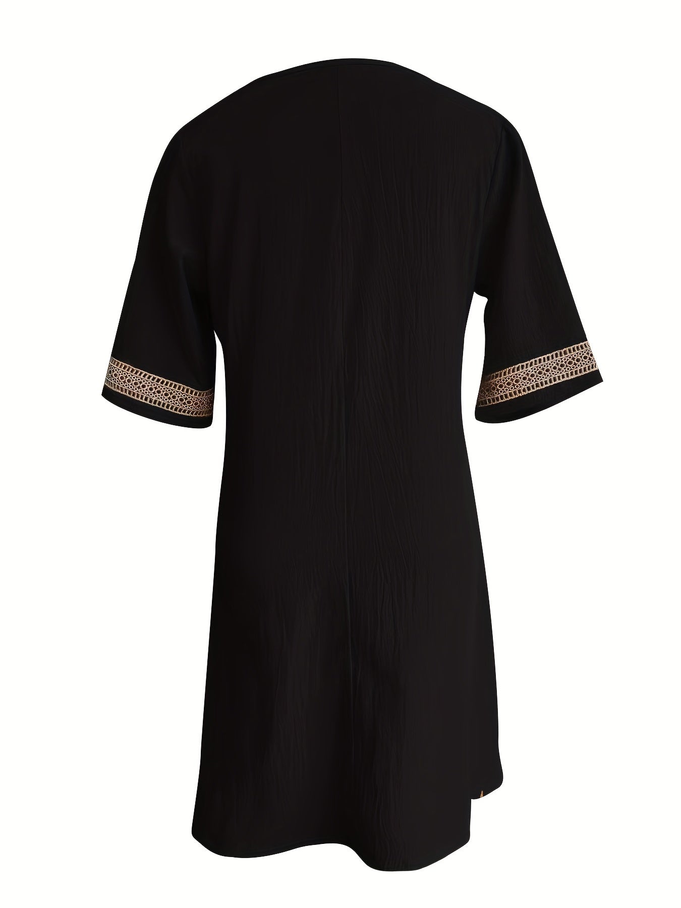 Guipure Lace V Neck Dress, Casual Short Sleeve Dress