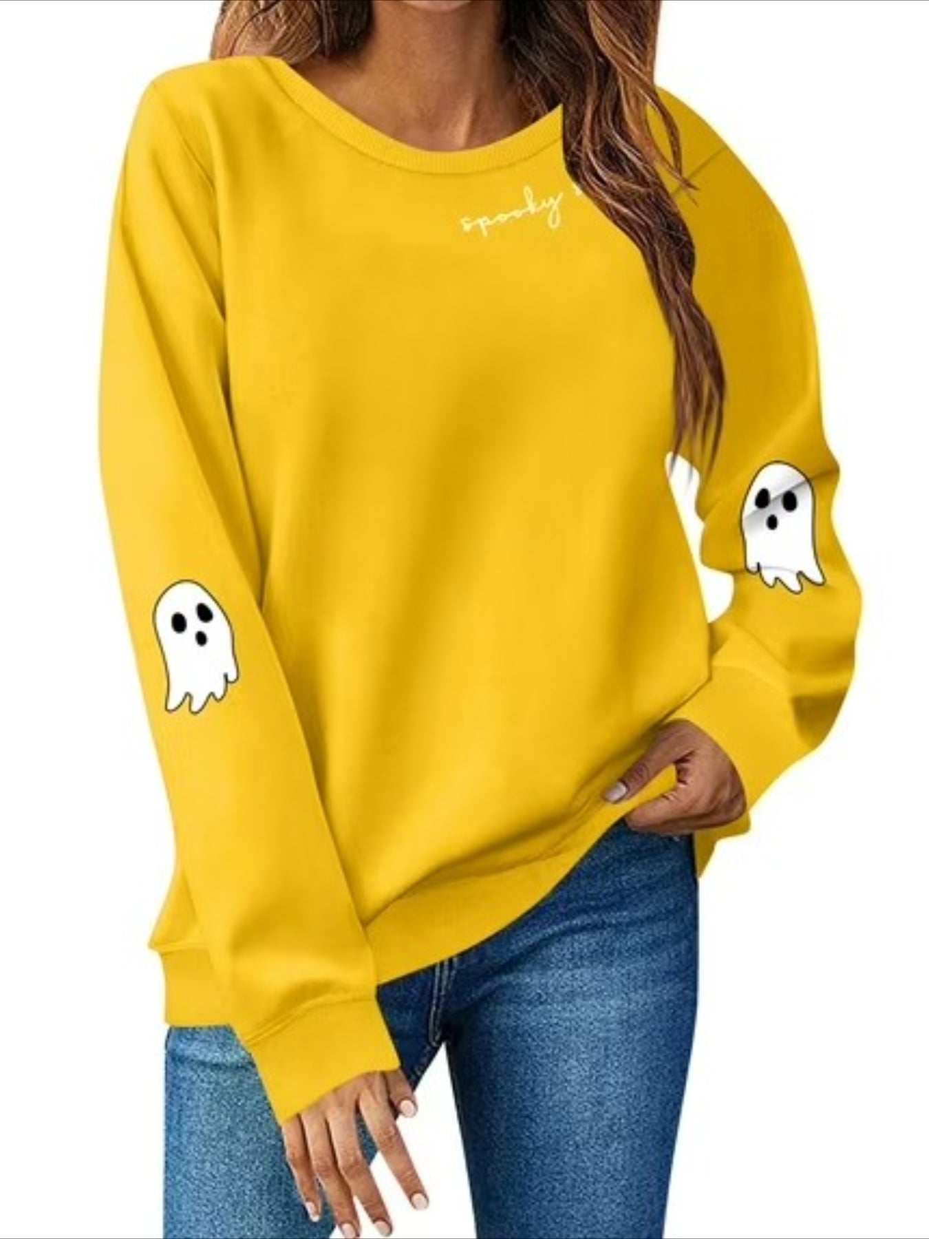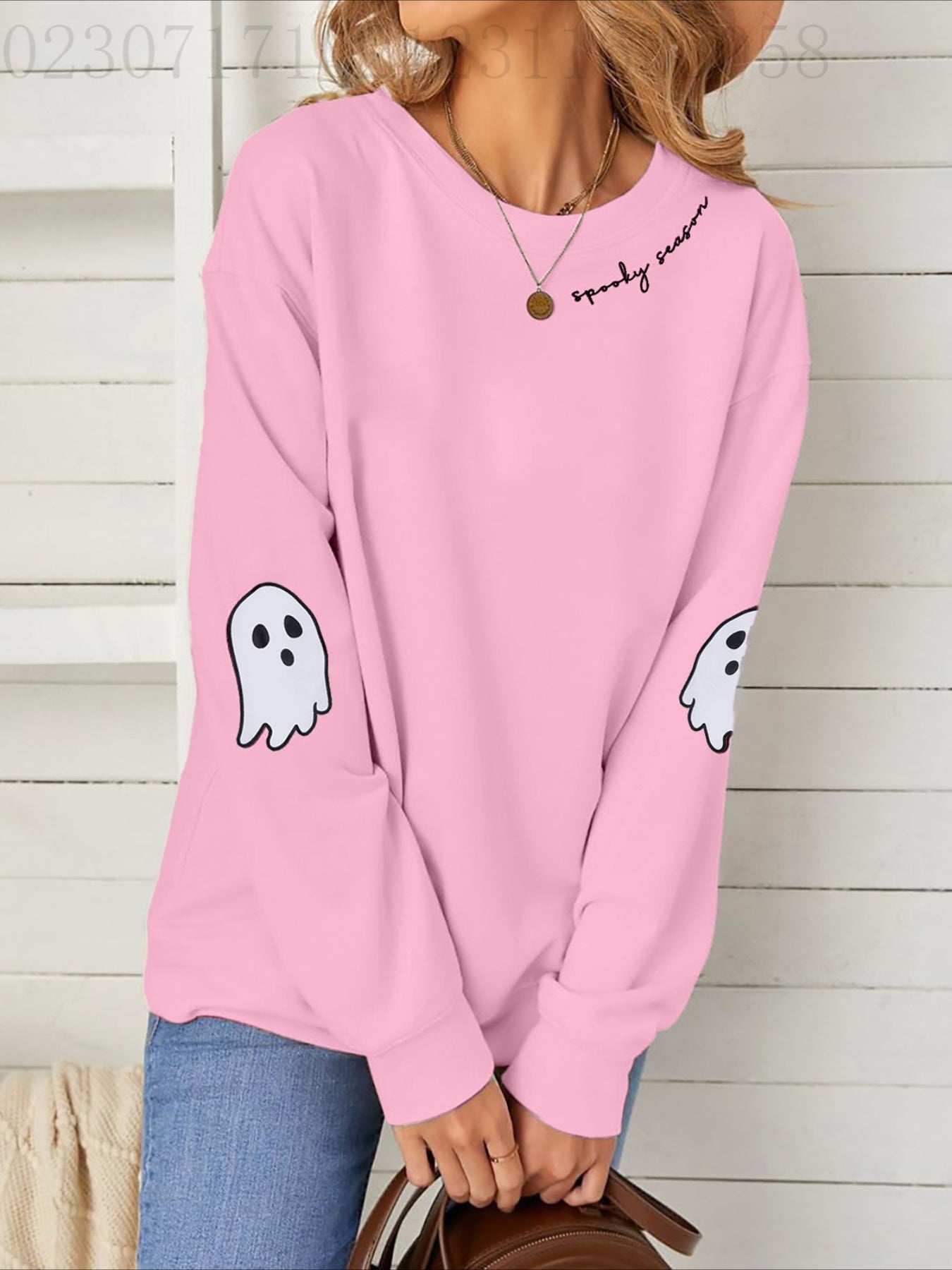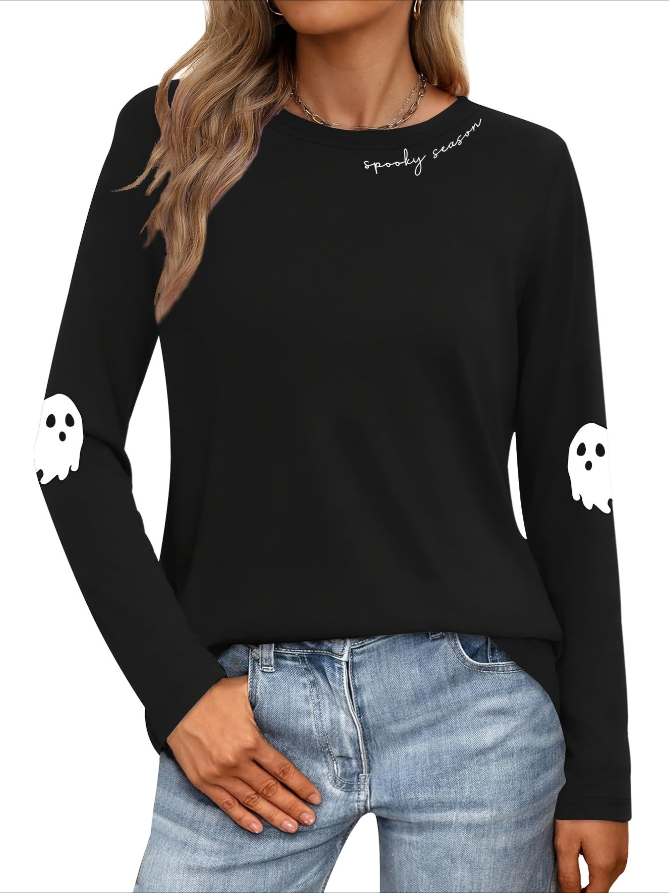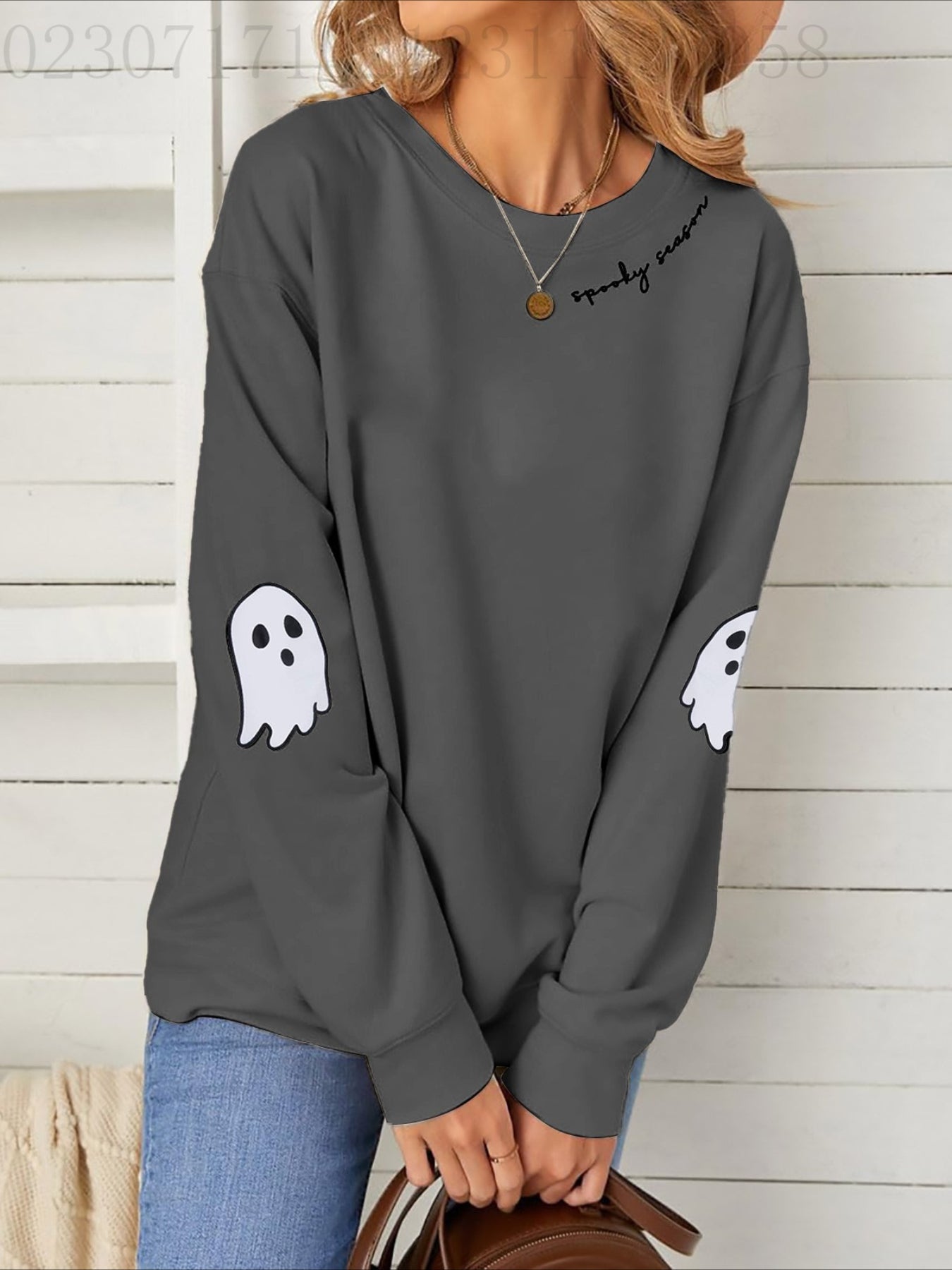 Halloween Round Neck Long Sleeve Loose Fit Top