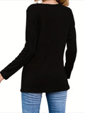 Christmas Tree Print Button Decor T-shirt, Casual Long Sleeve Plaid Print T-shirt