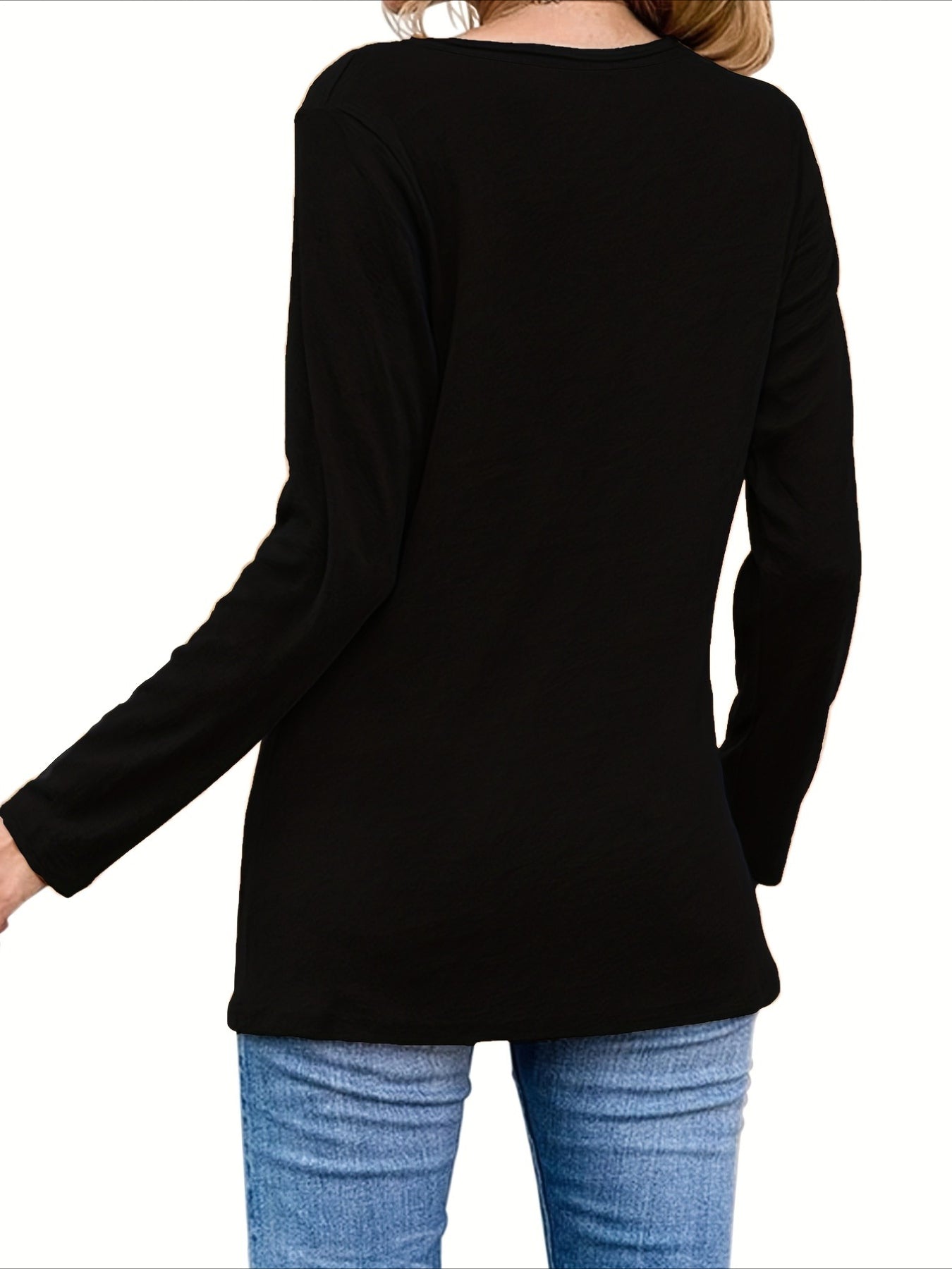 Sale Striped Botton Crew Neck T-Shirt, Elegant Long Sleeve T-Shirt
