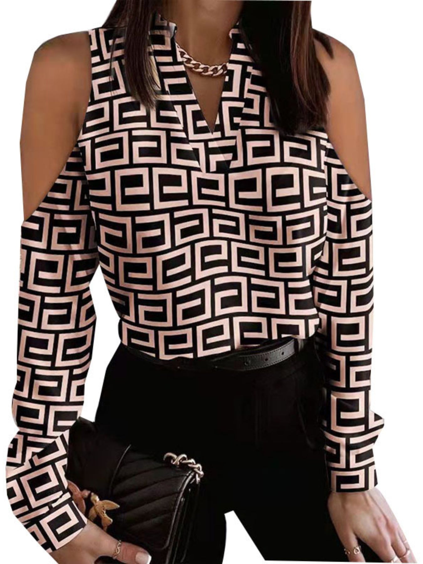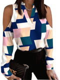Sale V Neck Long Sleeve Geometric Regular Micro-Elasticity Regular Fit Blouse